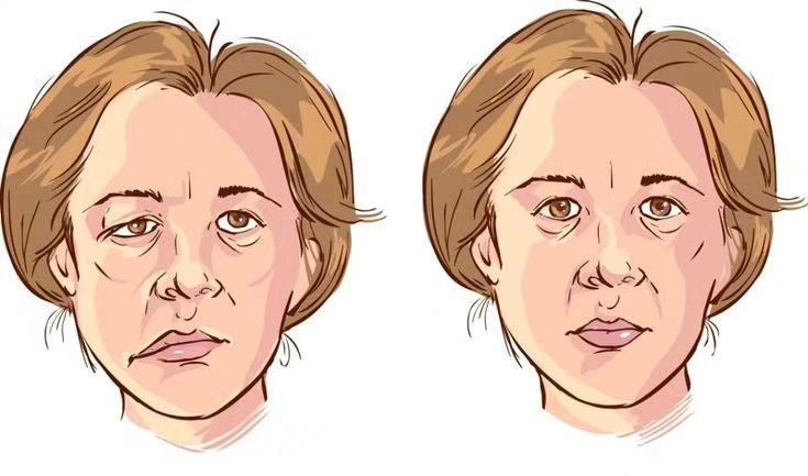 Shenjat klinike të paralizës faciale periferike janë: asimetri e fytyrës me tërheqje nga ana e